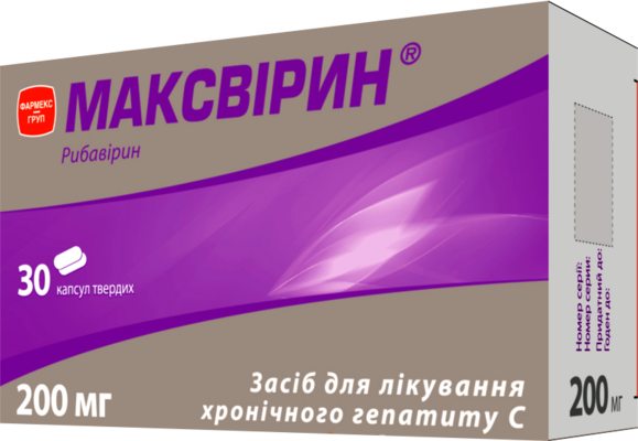 Фармакодинамика. Максвирин (рибавирин) - синтетический аналог нуклеозидов, активный in vitro относительно некоторых РНК- и ДНК-вирусов. Монотерапия рибавирином хронического гепатита С не приводит к элиминации вируса (РНК-вируса гепатита С) или улучшению гистологической картины печени после 6-12 месяцев терапии на протяжении 6 месяцев периода дальнейшего наблюдения. Вместе с тем комбинация рибавирина с пегинтерфероном альфа-2b или интерфероном альфа-2b приводит к повышению эффективности лечения по сравнению с монотерапией пегинтерфероном альфа-2b или интерфероном альфа-2b. Механизм, благодаря которому рибавирин в комбинации с пегинтерфероном альфа-2b или интерфероном альфа-2b изменяет эффект на вирус гепатита С, не известен.