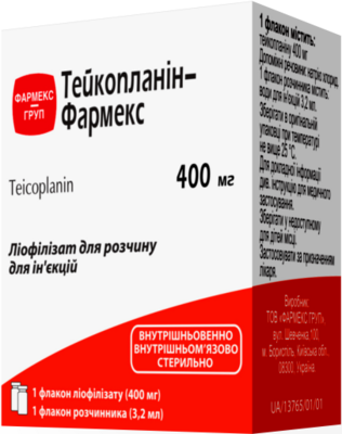 1 флакон містить тейкопланіну 200 мг або 400 мг;
